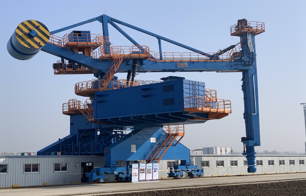 由杭州華新機(jī)電工程有限公司總包的一臺設(shè)計生產(chǎn)率為750t/h的螺旋卸船機(jī)總裝完成進(jìn)入調(diào)試階段。該設(shè)備用于國家能源集團(tuán)宿遷發(fā)電有限公司二期擴(kuò)建2×660MW超超臨界二次再熱機(jī)組工程。本工程位于宿遷市南偏東距市中心18km處的京杭大運(yùn)河南,二期新建碼頭共有4個泊位,配置兩臺螺旋式卸船機(jī)、兩臺16t清艙用港口門座機(jī)。
